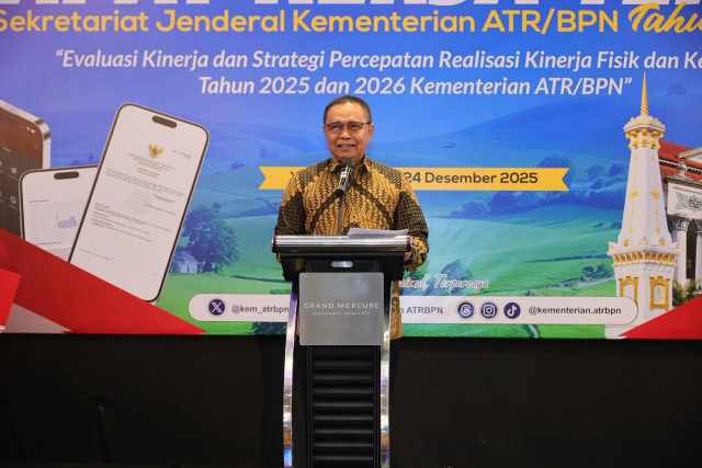 D.I. Yogyakarta,(CYBER24.CO.ID) – Inspektur Jenderal (Irjen) Kementerian Agraria dan Tata Ruang/Badan Pertanahan Nasional (ATR/BPN), Pudji Prasetijanto Hadi, membuka Rapat Kerja Teknis (Rakernis) Sekretariat Jenderal Kementerian ATR/BPN yang diselenggarakan pada Senin (22/12/2025). Pada forum yang diikuti jajaran Staf Tata Usaha dari satuan kerja (Satker) pusat dan daerah tersebut, Irjen ATR/BPN menyampaikan pentingnya peran Staf Tata Usaha dalam mendukung pengawasan internal serta menjaga akuntabilitas kinerja organisasi.
