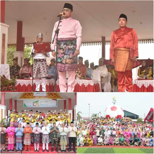 Pelalawan,(CYBER24.CO.ID) – Bupati Pelalawan, H Zukri SM MM bertindak sebagai inspektur upacara pada peringatan Hari Jadi Provinsi Riau ke-68 yang digelar di halaman Taman Bola Pangkalan Kerinci, Sabtu (9/8/2025).