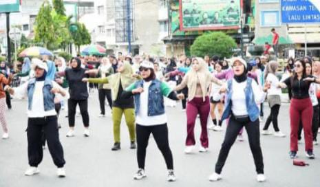 Senam sehat pada minggu ini, dipandu oleh Asosiasi Intruktur Aerobic dan Fitness Indonesia Labuhanbatu.