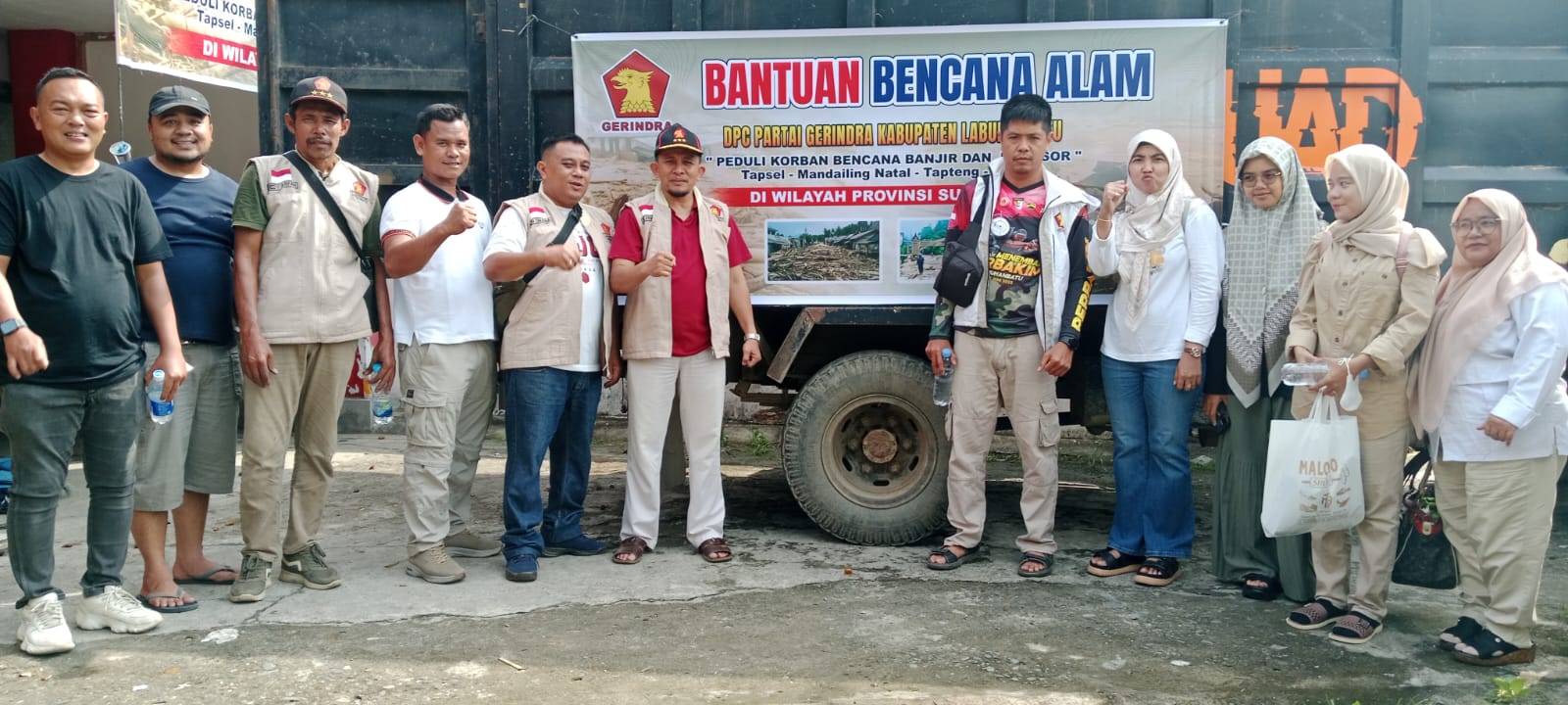 Labuhanbatu,(CYBER24.CO.ID) – DPC Partai Gerindra Kabupaten Labuhanbatu menyalurkan bantuan kemanusiaan kepada masyarakat yang menjadi korban bencana alam di wilayah Tapanuli Selatan, Mandailing Natal, dan Sibolga. Bantuan yang disalurkan meliputi beras, air mineral, serta pakaian layak pakai, dan diberangkatkan langsung bersama rombongan kader Partai Gerindra se-Kabupaten Labuhanbatu.
