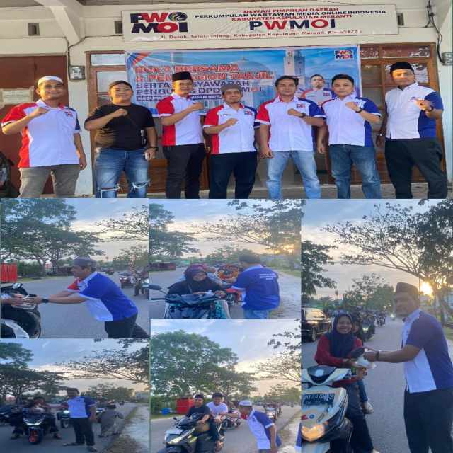 MERANTI,(CYBER24.CO.ID) – Dewan Pimpinan Daerah (DPD) Perkumpulan Wartawan Media Online Indonesia (PWMOI) menggelar kegiatan berbagi takjil dan buka bersama di bulan suci Ramadhan.