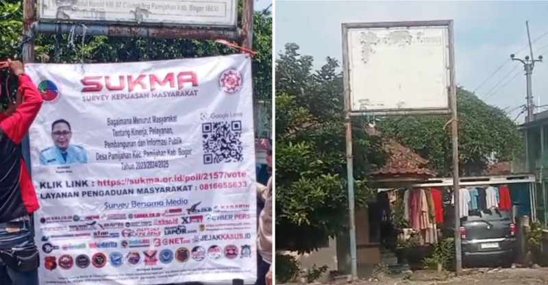 Bogor,(CYBER24.CO.ID) – Pemerintah Desa Pamijahan, Kecamatan Pamijahan, Kabupaten Bogor, kembali menjadi sorotan publik. Pasalnya, tindakan aparat desa yang mencopot banner pemantauan kinerja desa milik Lembaga Survey Kepuasan Masyarakat (SUKMA) dinilai sebagai bentuk penghalangan terhadap tugas media dan lembaga publik dalam menjalankan fungsi kontrol sosial.