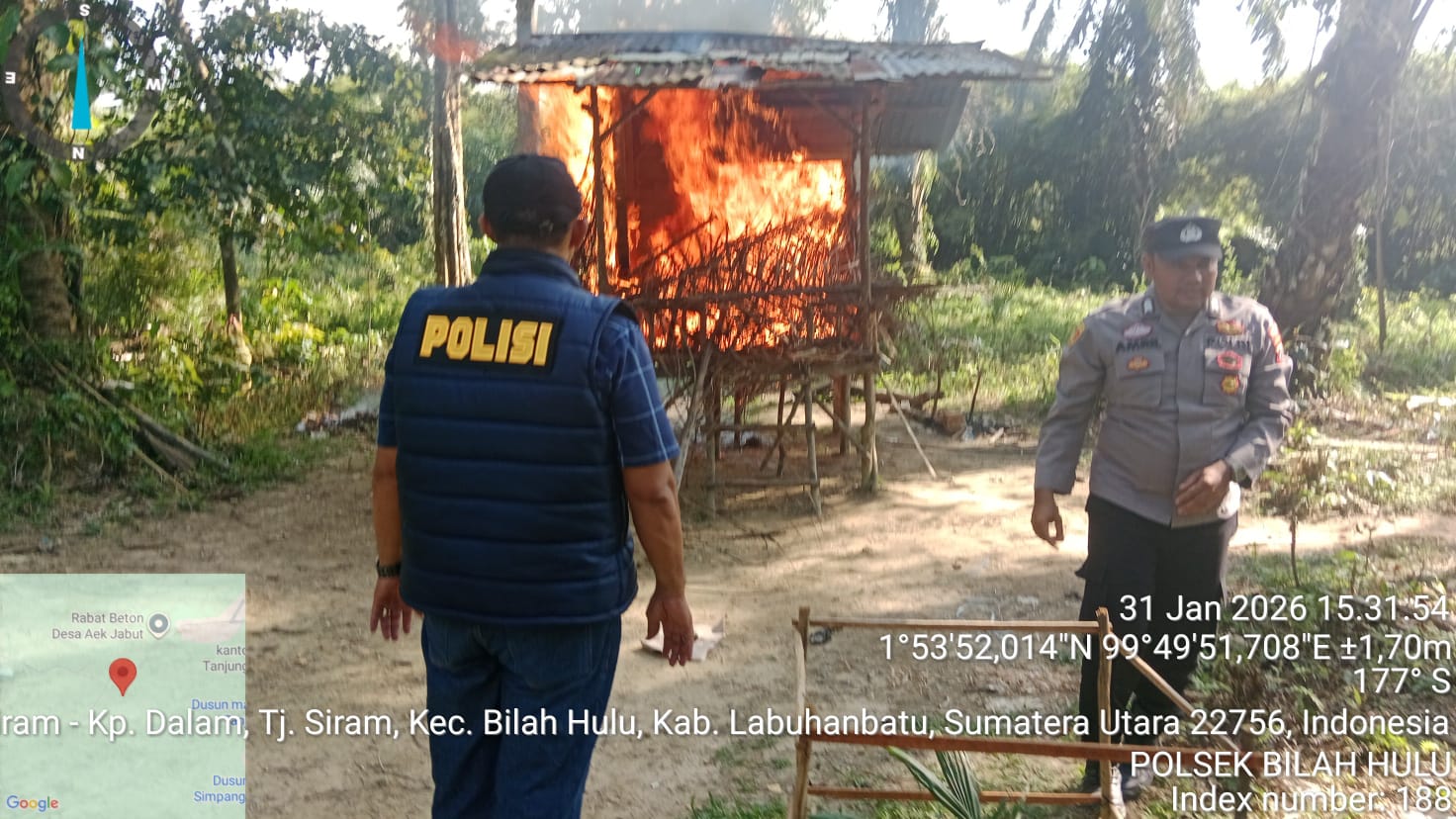 Sebagai langkah pencegahan agar lokasi tersebut tidak kembali dimanfaatkan sebagai tempat transaksi maupun penyalahgunaan narkotika, gubuk yang terbuat dari kayu beratap seng itu dimusnahkan dengan cara dibakar