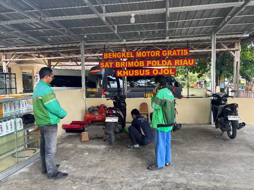 Solusi Nyata di Jalanan : Bengkel Gratis Brimob Riau Ringankan Beban Ojol