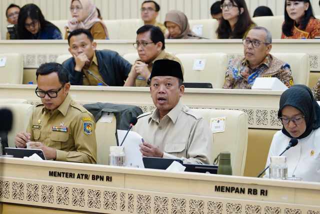 Turut mendampingi Menteri Nusron, para Pejabat Pimpinan Tinggi Madya dan Pratama Kementerian ATR/BPN. Raker dan RDP ini juga diikuti oleh Menteri Pendayagunaan Aparatur Negara dan Reformasi Birokrasi (PANRB), Rini Widyantini; Kepala Badan Kepegawaian Negara (BKN), Zudan Arif Fakrulloh; Kepala Lembaga Administrasi Negara (LAN) RI, Muhammad Taufiq; Wakil Menteri Dalam Negeri, Bima Arya Sugiarto dan Akhmad Wiyagus; serta Wakil Menteri PAN-RB, Purwadi Arianto. (MW/FA)