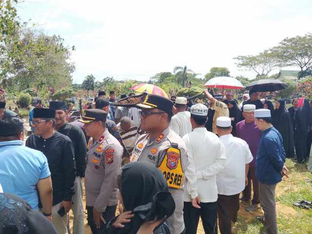Kehadiran dua pucuk pimpinan Polres Kampar di tengah iringan pelayat menjadi perhatian, sekaligus memastikan seluruh rangkaian kegiatan, mulai dari pelepasan jenazah dari rumah duka, sholat jenazah di Masjid Al-Ikhlas, hingga prosesi inti pemakaman, berjalan aman, lancar, dan penuh penghormatan.