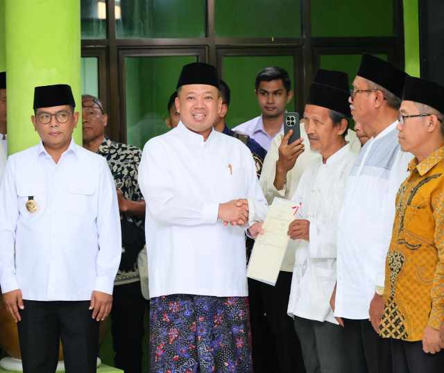 “Wakaf ini milik umat Islam. Pelepasan dari hak individu kepada publik, kepada umat. Karena itu, negara hadir untuk memastikan tanah wakaf memiliki kepastian hukum melalui sertipikasi. Saya minta ini ‘dikeroyok’ bersama,” ujar Menteri ATR/Kepala BPN Nusron Wahid setelah menyerahkan sertipikat.