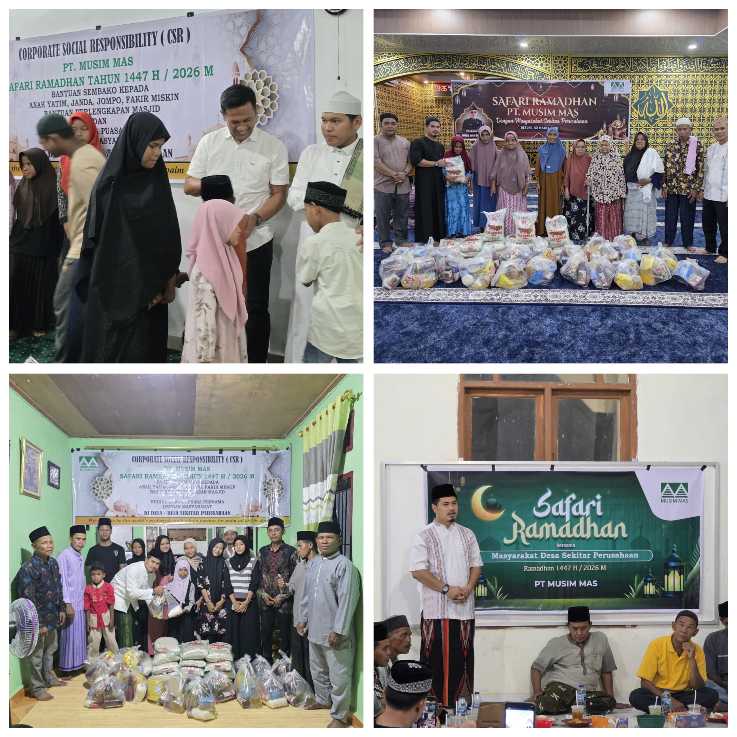 ​Rangkaian acara diawali dengan buka puasa bersama yang dihadiri oleh manajemen perusahaan, pemerintah setempat, dan tokoh masyarakat. Selain mempererat tali silaturahmi, PT Musim Mas juga menyalurkan total 750 paket sembako yang diperuntukkan bagi anak yatim, piatu, janda tua, serta lansia (jompo). Tak hanya bantuan pangan, perusahaan turut memberikan bantuan perlengkapan masjid berupa kain sarung, sajadah, hingga perangkat pengeras suara (speaker) guna mendukung kelancaran ibadah masyarakat.